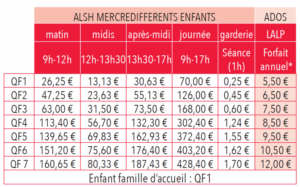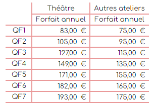 Les cotisations aux activités se calculent en fonction des revenus annuels et donc du quotient familial caf. Pour cela, munissez-vous d’une attestation de quotient caf datée de moins de 3 mois (le cas échéant, votre avis d’imposition basé sur les revenus n-2).